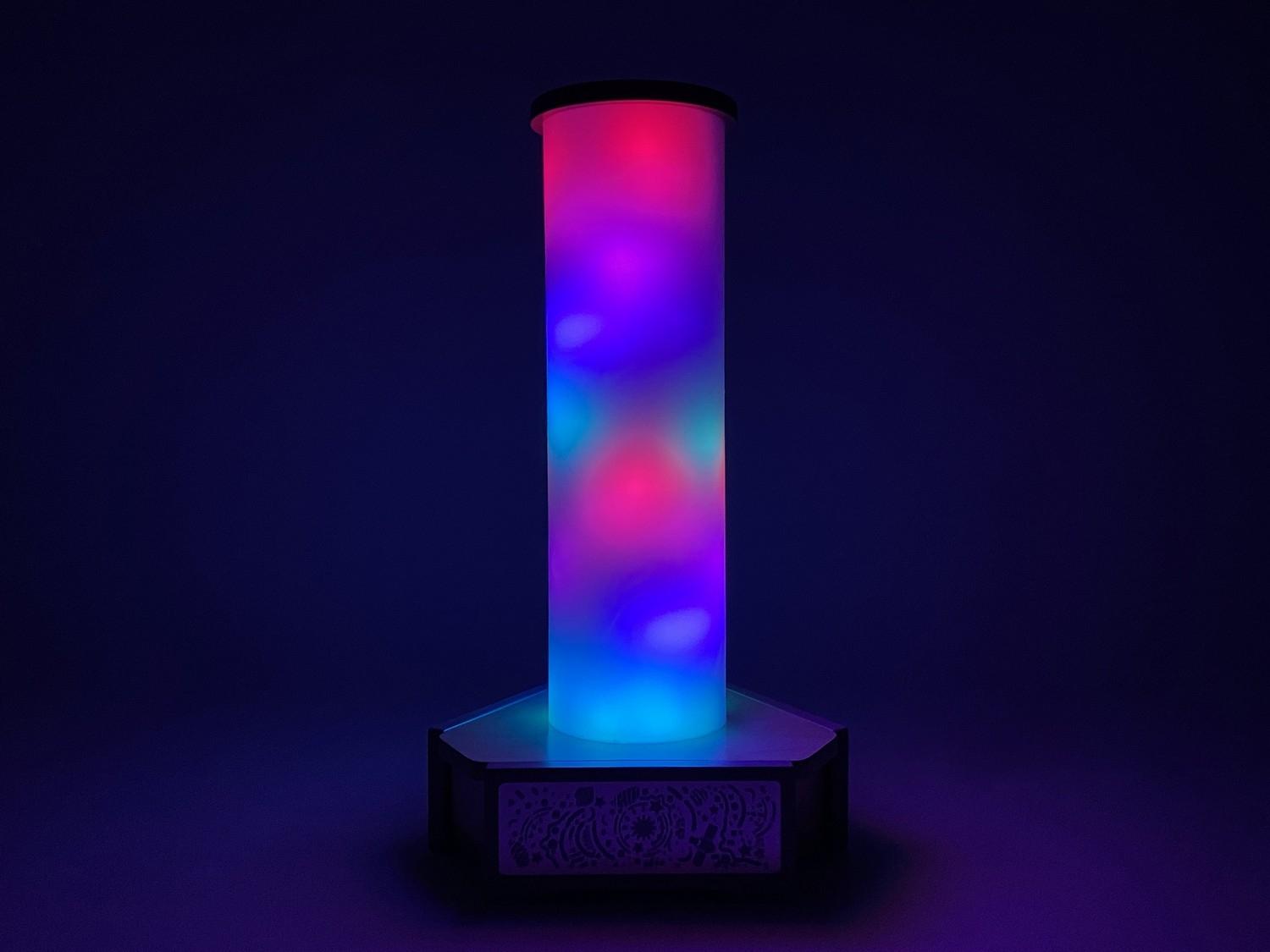Свечение колонны регулируется с пульта управления, в нём есть 142 динамических режима: можно переключать цвета, скорость и плавность их смены, добавлять различные спецэффекты. Предусмотрена функция сбора любимых эффектов: те, что вам больше нравятся, будут выделены в отдельный плейлист.